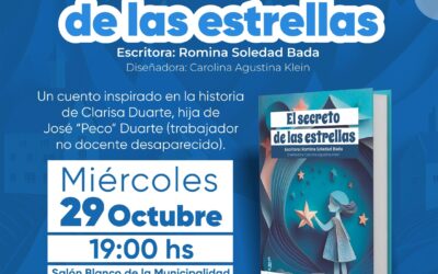 El Sindicato de Obras Sanitarias de Río Cuarto, a través de la Secretaría de Derechos Humanos, tiene el agrado de invitarles a la presentación del libro “El secreto de las estrellas”. El evento se realizará el miércoles 29 de octubre a las 19:00 en el Salón Blanco de...